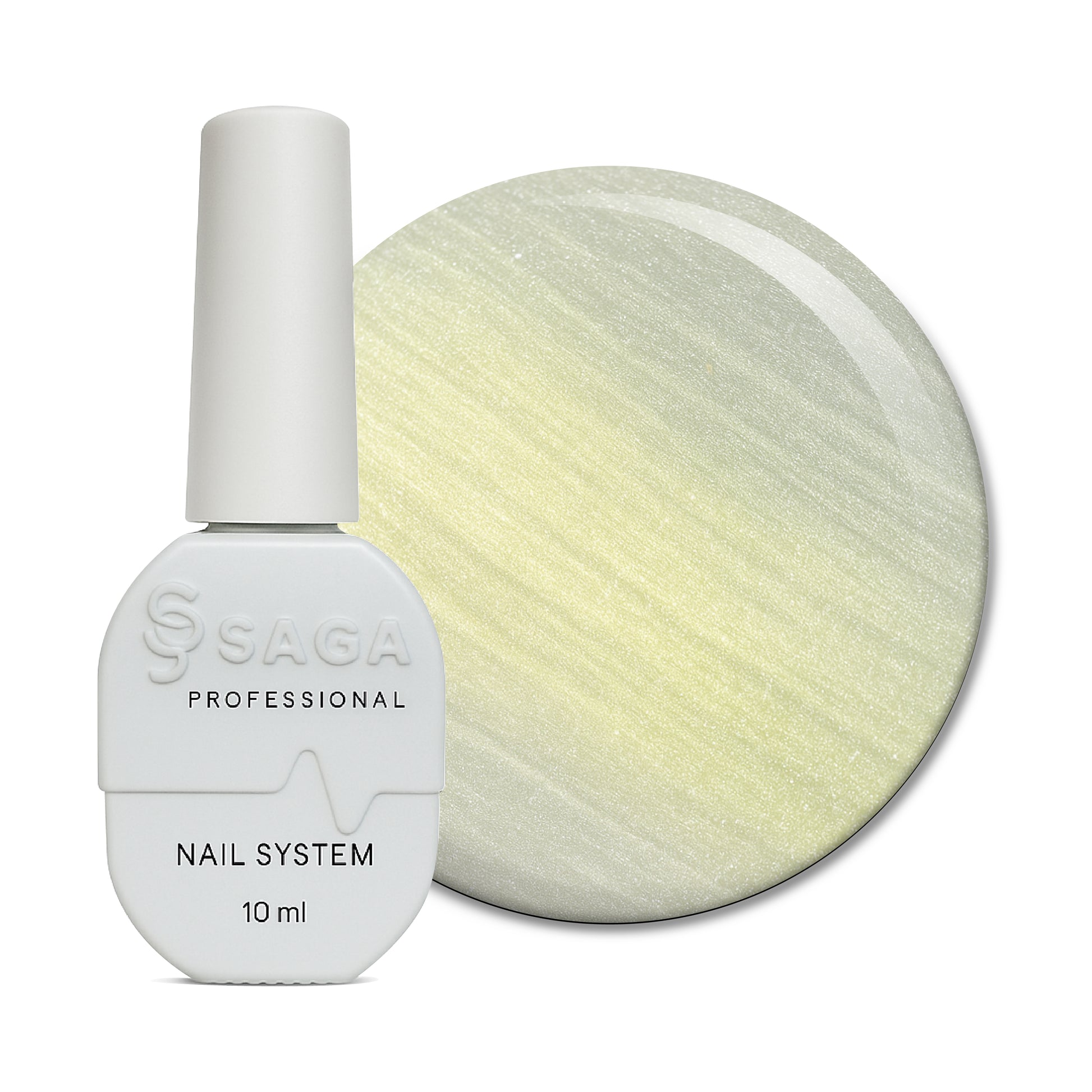 SAGA Professional Silk Cat 5 – ein magnetischer Gel-Lack mit „Katzenauge“-Effekt in einem zarten lavendel-lilafarbenen Ton mit kühlem, perlmutt-silbrigem Schimmer. Beim Arbeiten mit dem Magneten entsteht ein edler, seidig wirkender Lichtstreifen, der von einem sanften Lavendelton zu einem kühleren, flieder-rosa Farbspiel übergeht und einen luftigen, leicht „Aquarell“-Schimmer auf den Nägeln erzeugt.