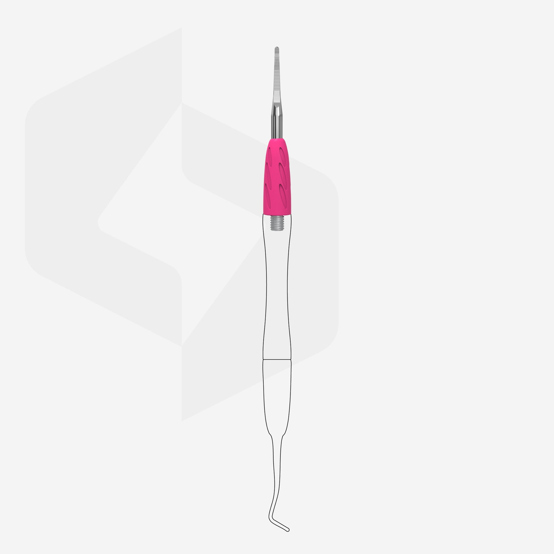 Working part of the pusher Combo UNIQ 37 – die Zehennagelfeile mit gebogenem Ende, entwickelt für die sanfte Bearbeitung der freien Nagelkante und die Formkorrektur bei der Pediküre. Durch die ergonomische Biegung passt sich der Arbeitsbereich ideal den anatomischen Besonderheiten der Zehennägel an und ermöglicht präzises Arbeiten selbst in schwer zugänglichen Bereichen.