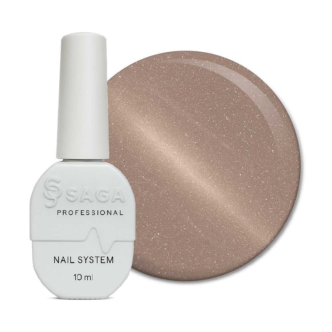 SAGA Professional Glow Cat 3 ist ein Gel-Lack mit „Katzenauge“-Effekt in einem zarten rosé-beigen Nudeton. Die sanfte, dezente Farbe mit metallischem Schimmer betont die natürliche Nagelschönheit und eignet sich sowohl für alltagstaugliche Maniküren als auch für festliche Akzent-Designs.