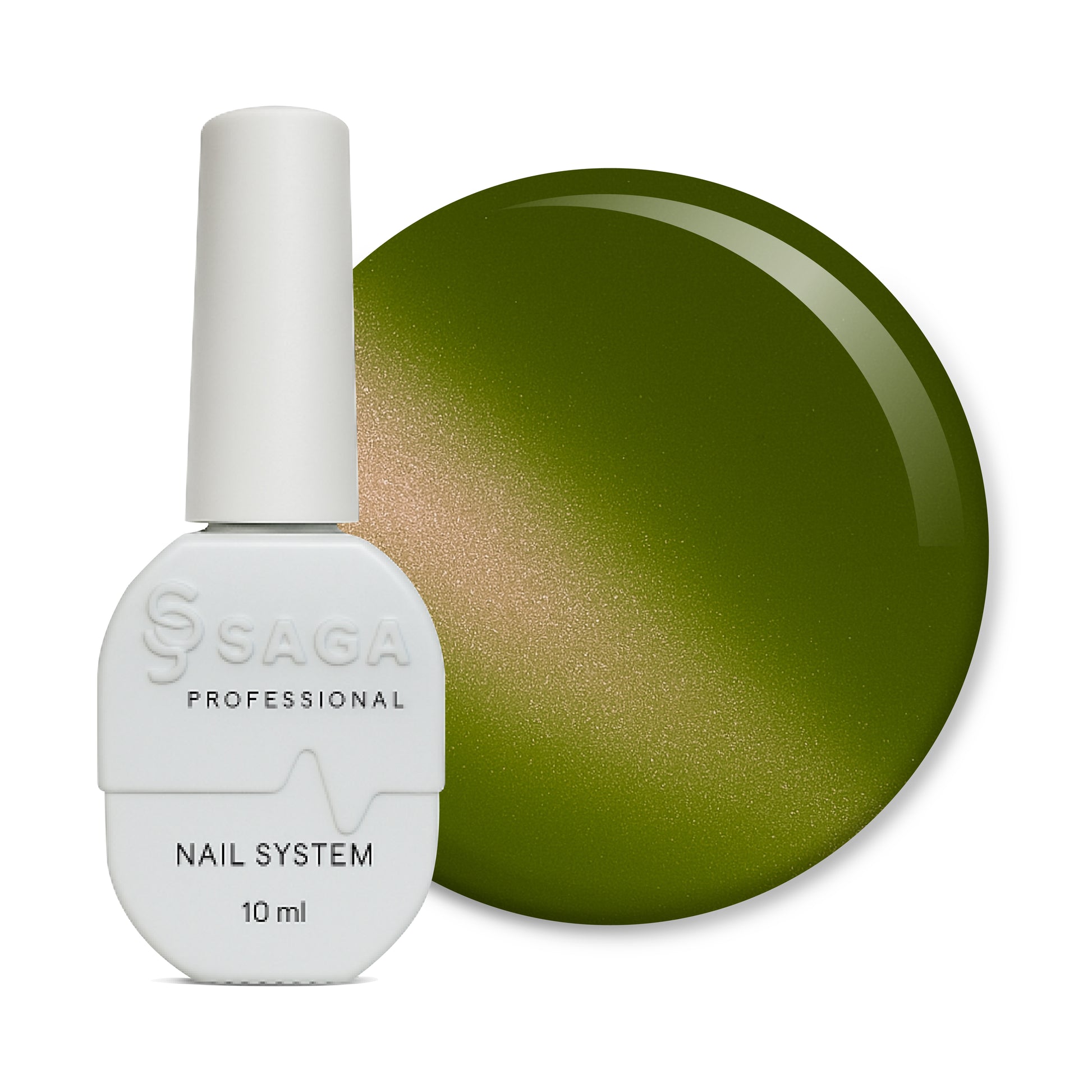 SAGA Professional Smoothie Cat 4 ist ein magnetischer Gel-Lack mit „Katzenauge“-Effekt und duochromem Finish mit rosa-grünen Reflexen. Der Farbton Nr. 4 verändert seine Wirkung je nach Lichteinfall und Ausrichtung der Magnetpartikel – von eher rosé bis hin zu grünlicheren Nuancen – und erzeugt so Tiefe und einen komplexen, facettenreichen Glanz auf den Nägeln.